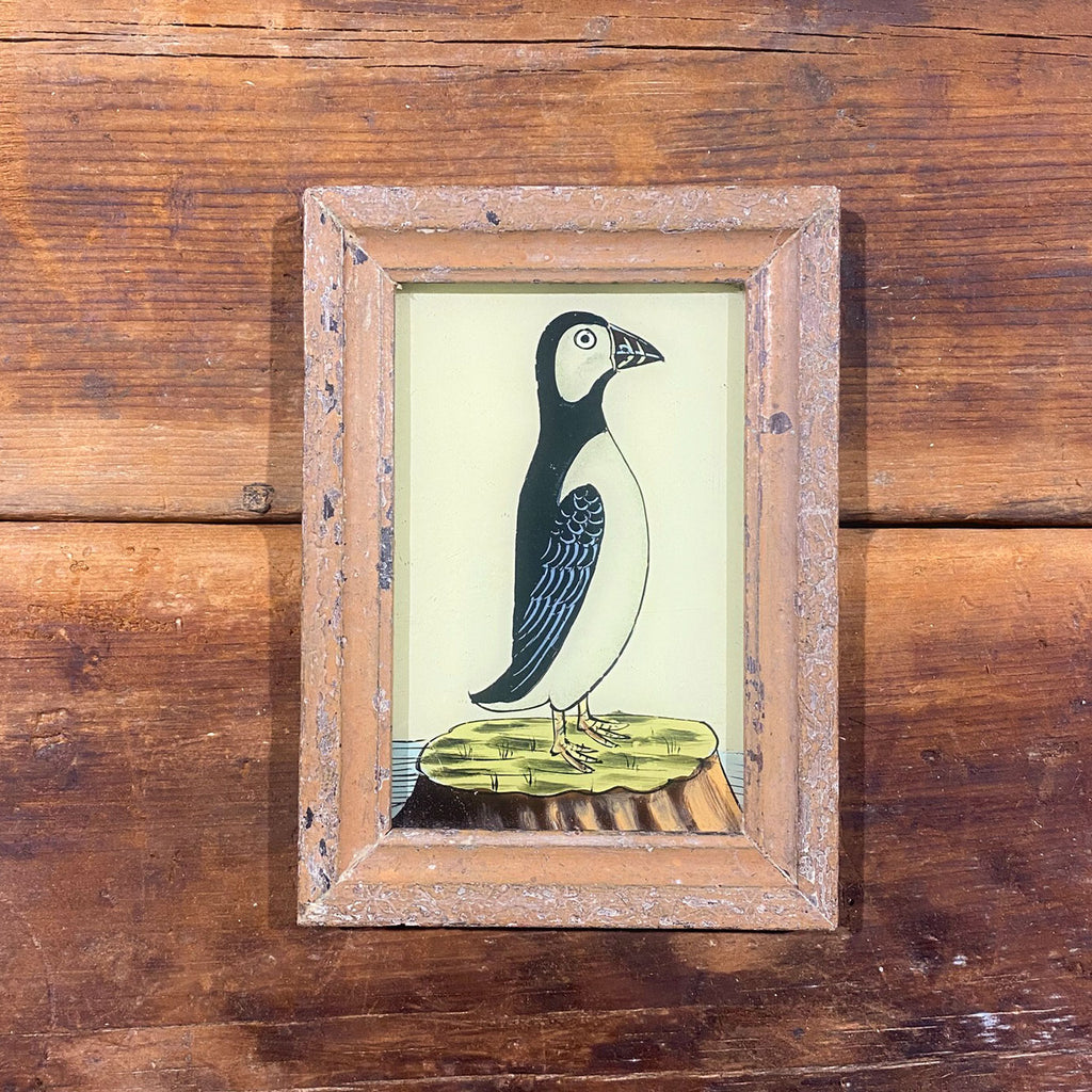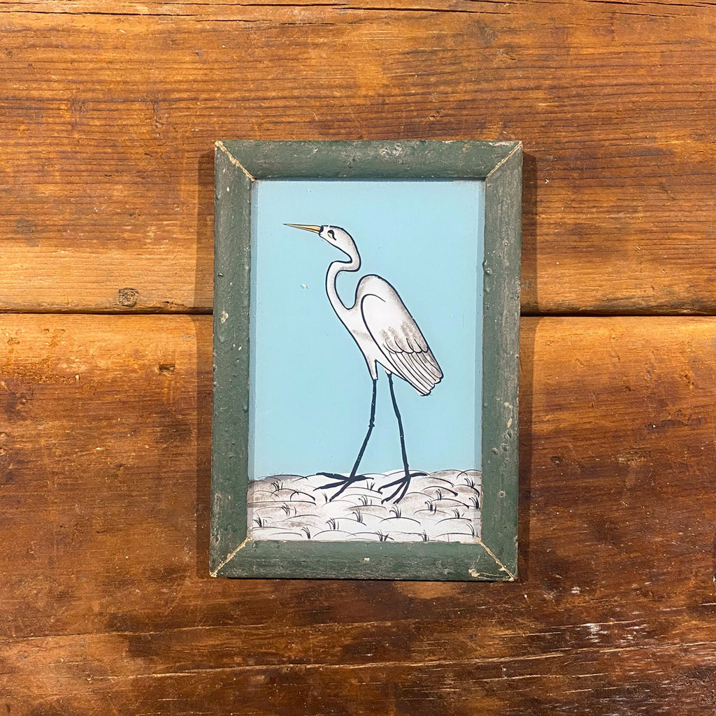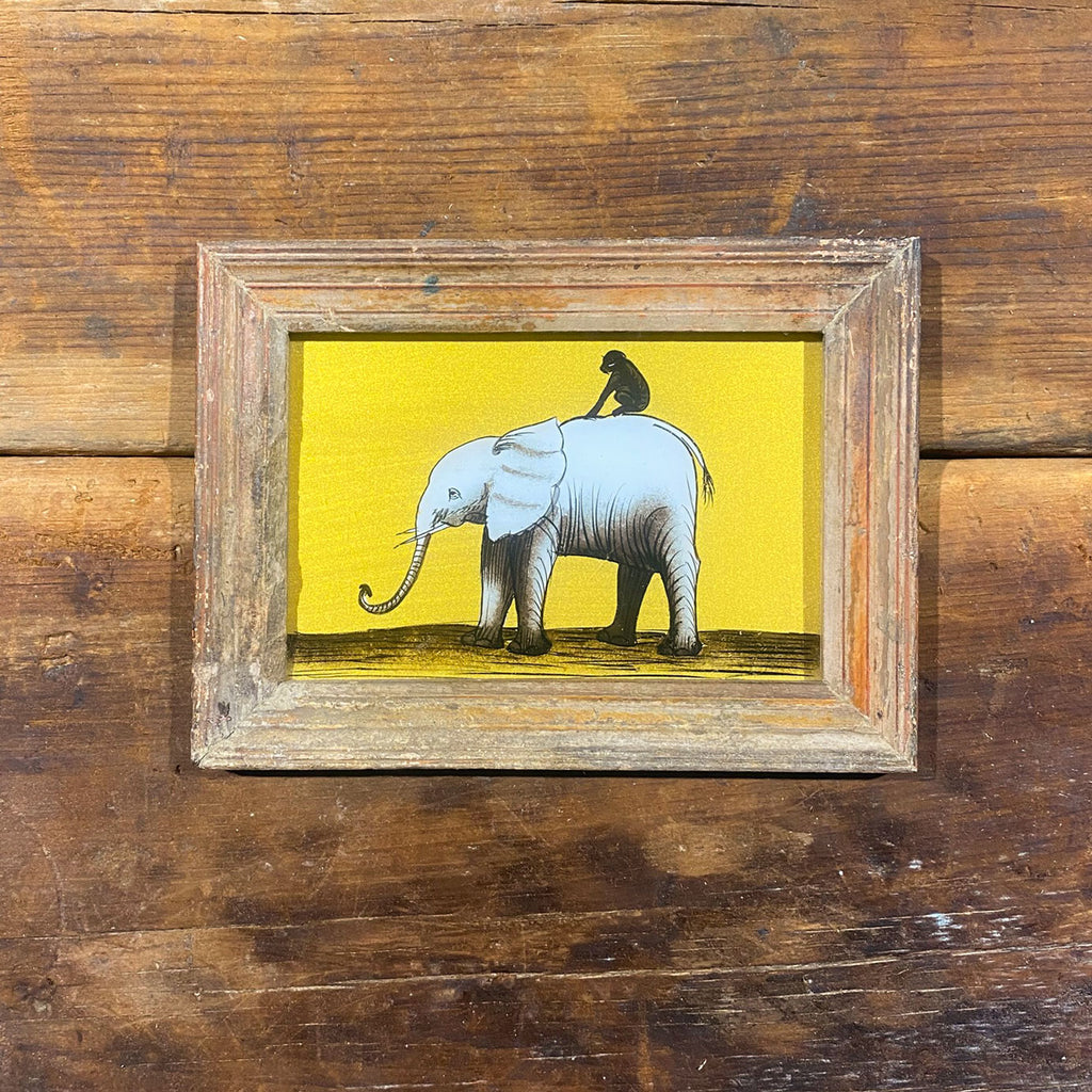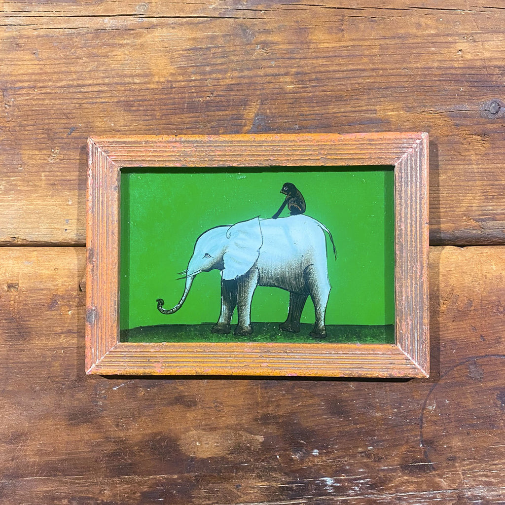 These gorgeous and playful glass paintings are hand painted in India. They are framed with reclaimed handmade framed and have so much quirky character.