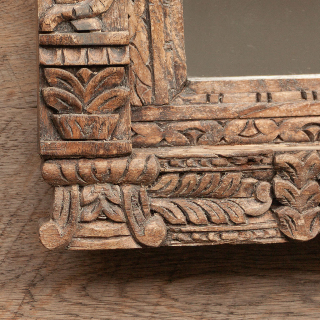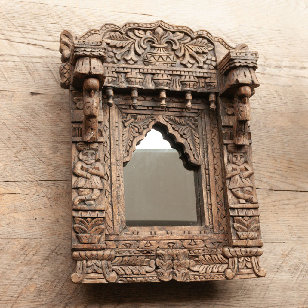 Material: Mango wood with hand-carved details, vintage mirror insert.
